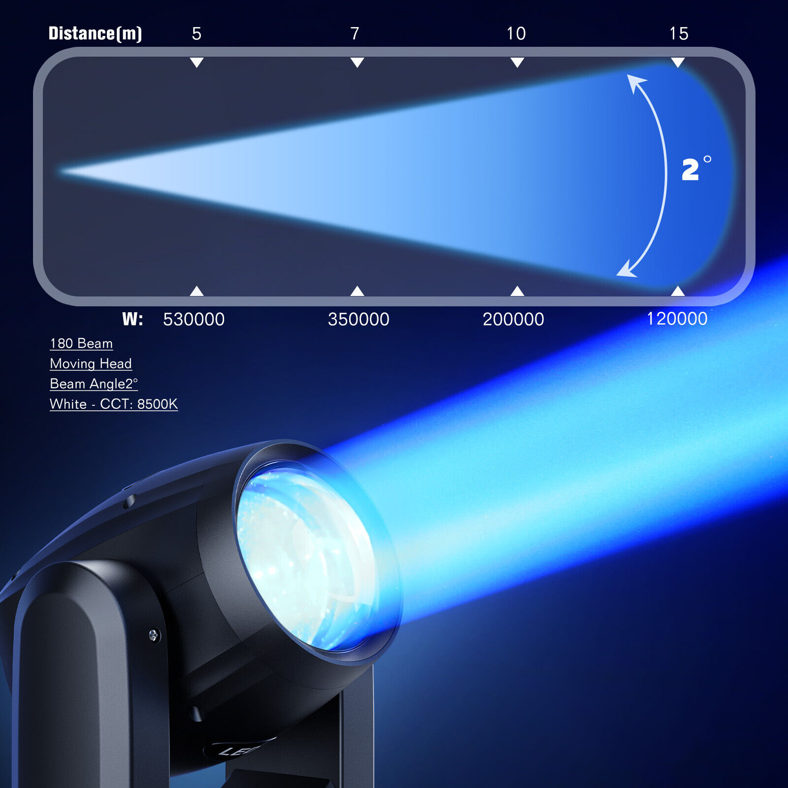 LED Beam Spot, sehr heller Movinghead, 200W LED Lampe, Features Rotierende Gobos, Farbmischung, Farbrad, Prisma, 14 Kanäle, Gewicht 11 Kg, Leistungsaufnahme: max. 250 W -> Demo Video |