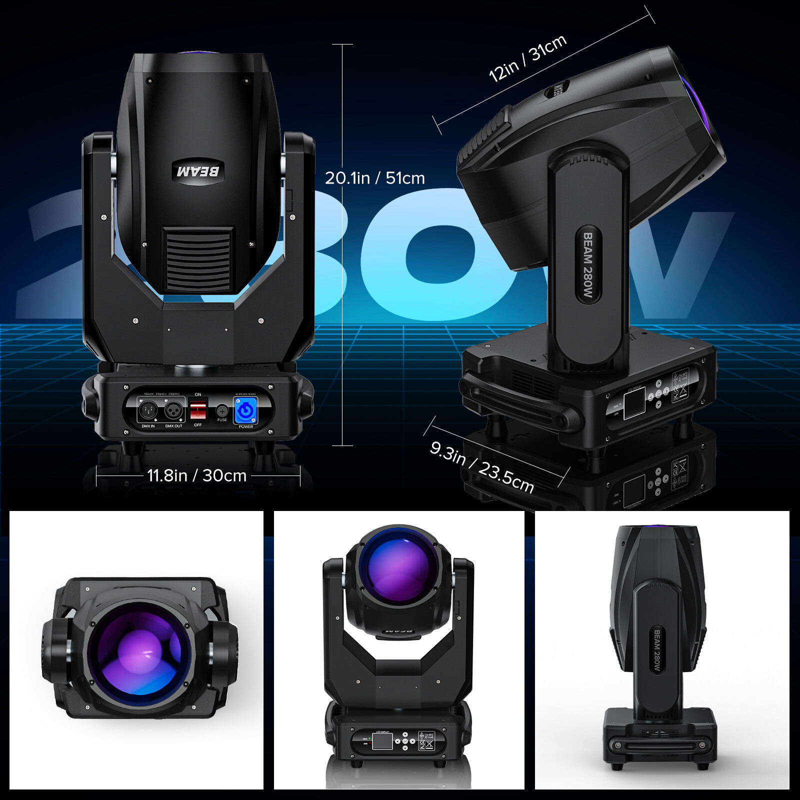 10R Beam Spot, super heller Movinghead, 280W R10 Lampe, Features Rotierende Gobos, Farbmischung, Farbrad, Prisma, 16 Kanäle, Gewicht 13 Kg, Leistungsaufnahme: max. 400 W -> Demo Video |