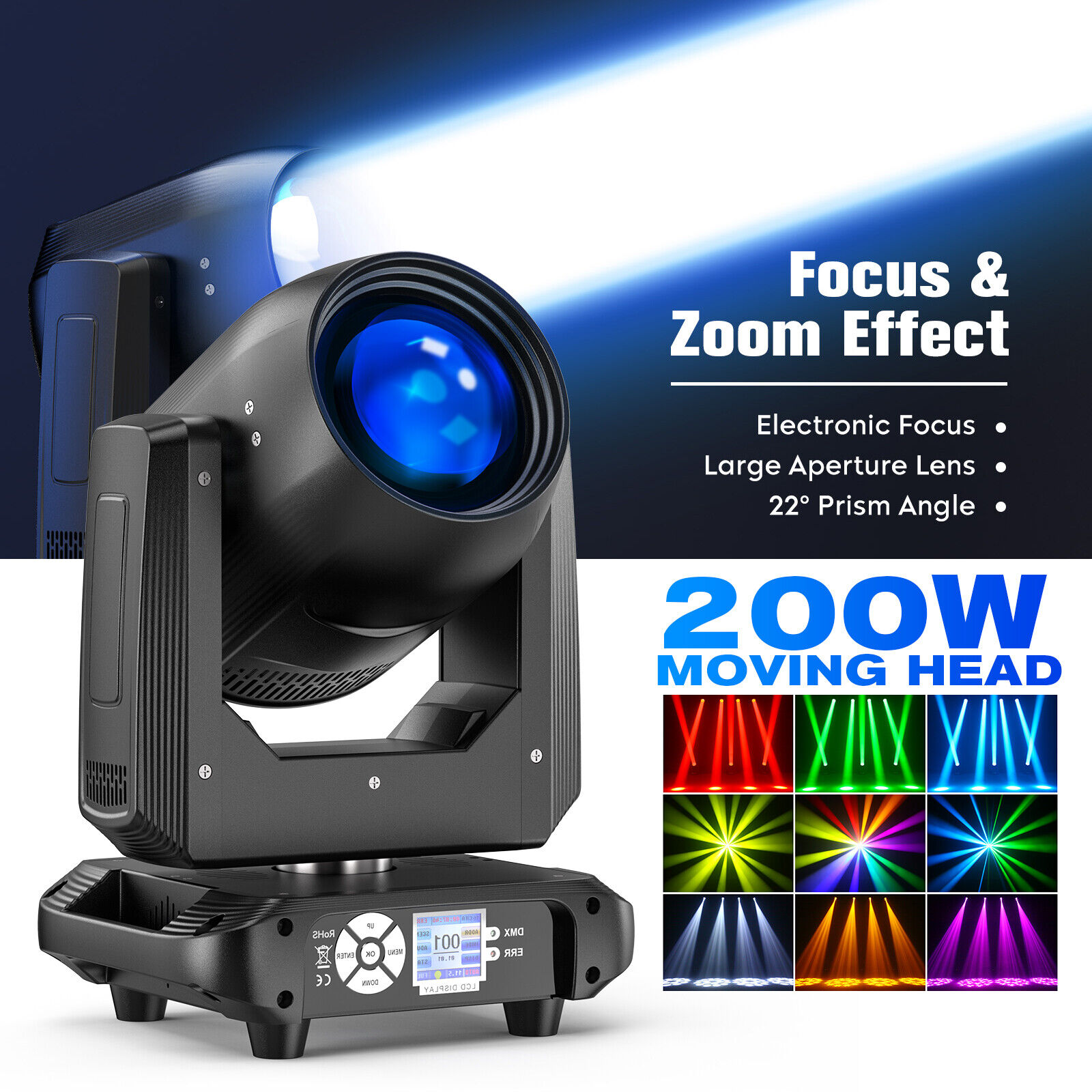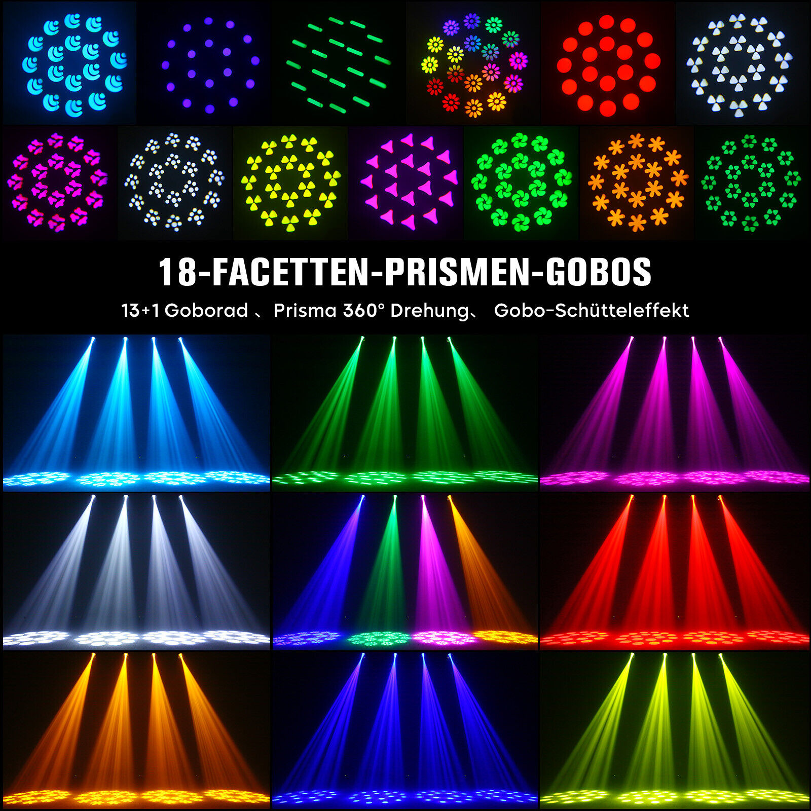 LED Beam Spot, sehr heller Movinghead, 200W LED Lampe, Features Rotierende Gobos, Farbmischung, Farbrad, Prisma, 14 Kanäle, Gewicht 11 Kg, Leistungsaufnahme: max. 250 W -> Demo Video |